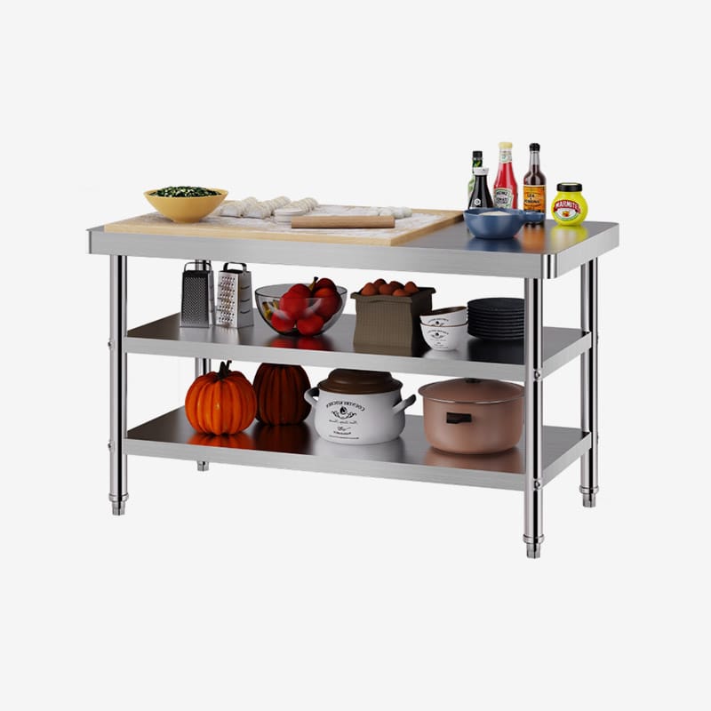A key consideration when choosing a heavy-duty workbench is load capacity. Commercial kitchens often place heavy appliances on workbenches, including mixers, cutting machines, dehydrators, or bulk food containers. Stainless steel benches can often hold 500–1,000 lbs of evenly distributed weight, and models with reinforced undershelves can handle even more.