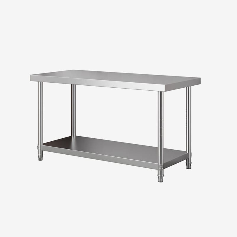 Standard commercial stainless workbenches usually support between 500 and 700 lbs (≈225–320 kg) of evenly distributed weight. Reinforced, heavy-duty models with thicker gauge and stronger frame can support 800 lbs (≈360 kg) or more. Always check the manufacturer’s specifications before placing heavy equipment on the bench.